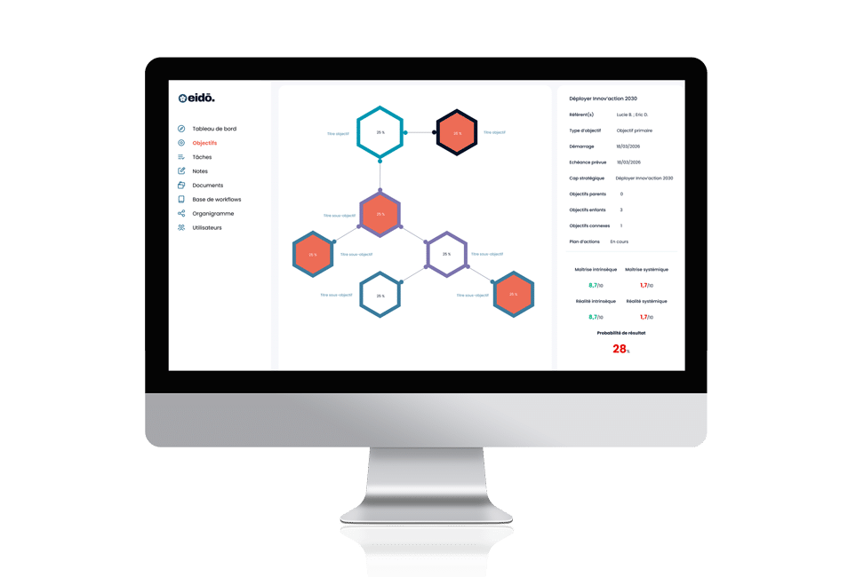 Eidō rend vos objectifs, leurs dépendances et leur avancement immédiatement lisibles.