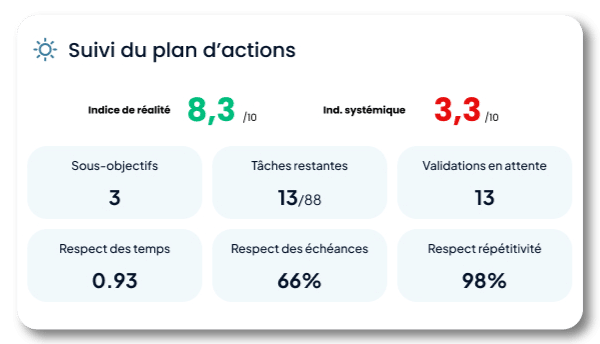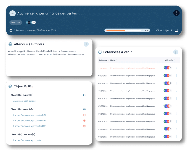 Les objectifs qui bloquent sont identifiés avant qu’ils ne s’aggravent. Vous intervenez au bon moment, pas après coup.